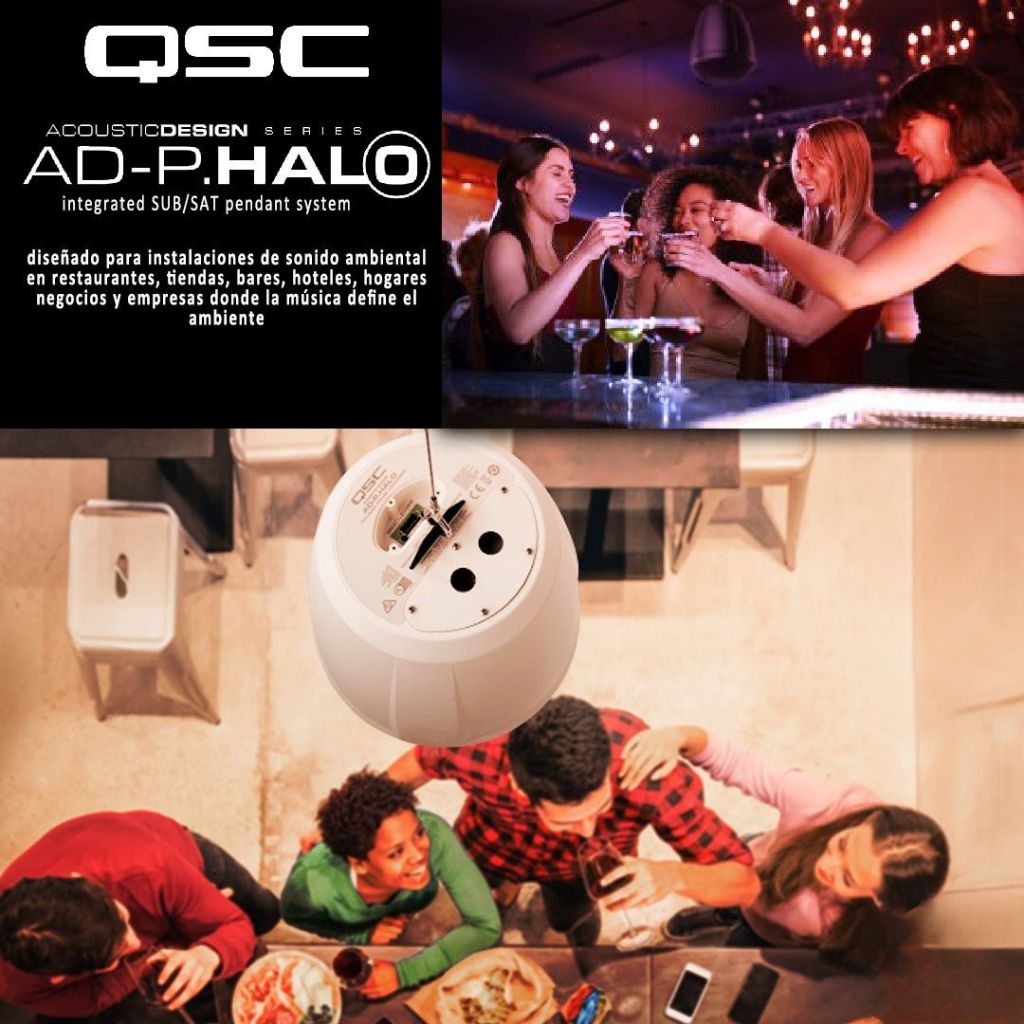 Por último, pero no menos importante, QSC vió la necesidad de integrar un altavoz todo en uno, que tuviese integrados los componentes de baja y de alta frecuencia dentro de una sola caja acústica, por esta razón surgió el AD-P.HALO que tiene una respuesta en frecuencia de 40 Hz a 20 kHz y entrega un nivel de presión sonora a 1 metro de 111 dB SPL y una potencia de 100 Watts a 6 ohmios aunque también se puede configurar para que trabaje en alta impedancia a 70,7 Voltios: 12.5 Watts, 25 Watts, 50 Watts y 100 Watts o a 100 Voltios: 25 Watts, 50 Watts o 100 Watts.