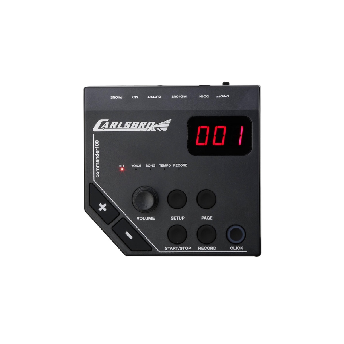 Kit de batería electrónica Carlsbro CSD100 de 7 piezas compuesto por un módulo Commander 100 que cuenta con 10 kits de batería preestablecidos, 108 voces de percusión, 10 canciones de demostración, entrada auxiliar y un metrónomo, 4 pads de batería y 3 platillos, incluido un platillo ride de doble zona y un marco telescópico totalmente ajustable en altura, es ideal para presentaciones en vivo o sesiones de grabación en estudio.