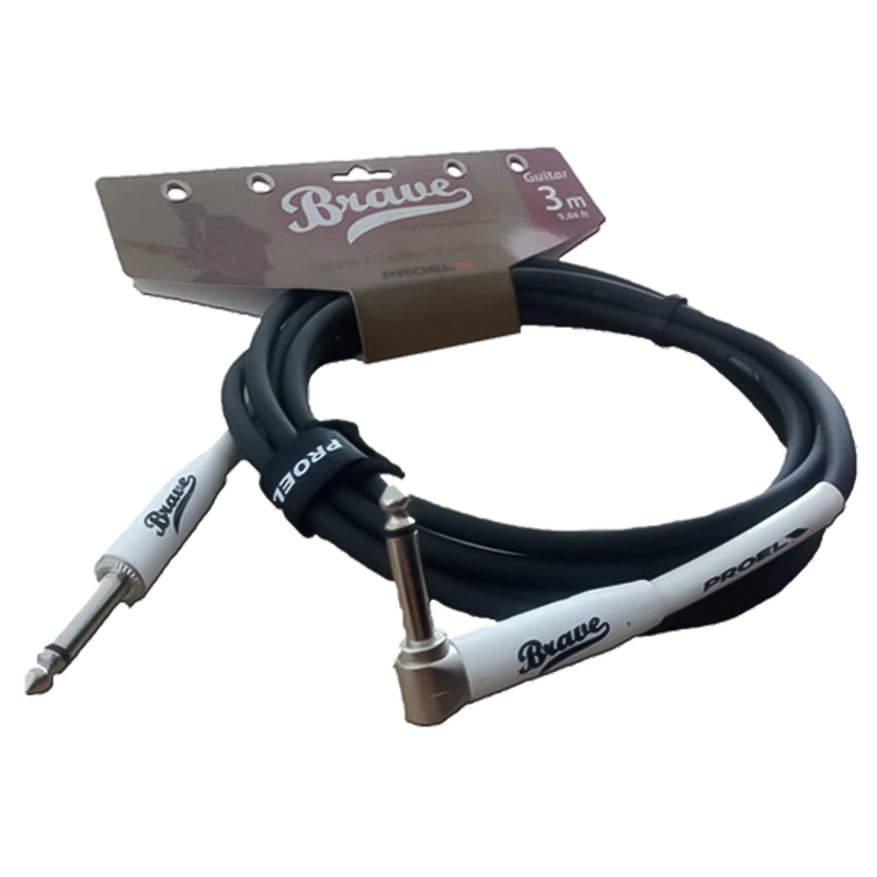 Cable de instrumento ensamblado profesional BRV120LU3BK de PROEL, con conector jack mono de Ø 6,3 mm – HPC118 – mono en ángulo recto de Ø 6,3 mm