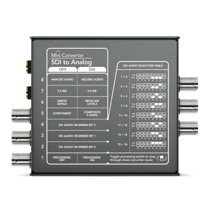 Este modelo permite procesar contenidos SDI para obtener señales analógicas por componentes, compuestas (NTSC/PAL) o S-Video. Asimismo, brinda compatibilidad con todos los formatos en SD y HD hasta una resolución máxima de 1080p30 y permite convertir imágenes HD a formatos analógicos SD, p. ej. S-Video y NTSC/PAL. Por otra parte, permite obtener canales de audio analógico balanceado o AES/EBU. Este conversor es ideal para emplear equipos analógicos de más antiguos cuando no es necesario invertir en la versión SDI 6G 4K.
