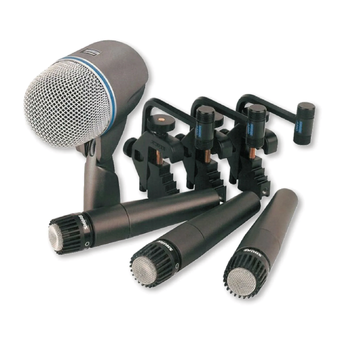 El kit incluye 3 micrófonos de instrumento SM57, perfectos para timbales y cajas, 1 micrófono para bombo Beta 52A, accesorios de montaje y 1 resistente maletín de transporte.