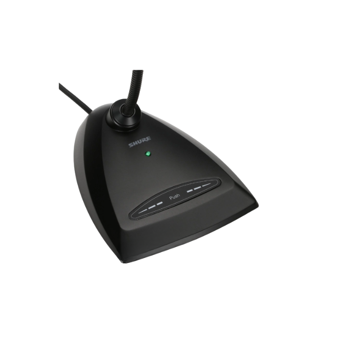 Micrófono cuello de ganso de 12” cardioide con base de sobremesa y posibilidad de cápsulas intercambiables, de mayor longitud y flexibilidad para conseguir una reproducción del sonido clara y fiable. El cuello de ganso cuenta con doble flexión que proporciona un fácil ajuste del micrófono. La cápsula de condensador incluida brinda rango dinámico y respuesta de frecuencias amplias para una reproducción sonora fiel. Su base para escritorio permite usar estos micrófonos en salas de uso general, en situaciones en las cuales se requiere una instalación rápida, o cuando una instalación permanente resulta poco práctica. Todos los micrófonos cuello de ganso Microflex de Shure ofrecen una alta sensibilidad y una salida balanceada sin transformador para maximizar la inmunidad al ruido electromagnético y a las interferencias de RF, incluso con tiradas largas de cable. Interruptor de encendido táctil programable y sistema antigolpes con un aislamiento de 20 dB contra las vibraciones de la superficie. Color negro.