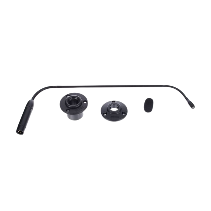 Micrófono cuello de ganso de 12” cardioide para empotrar con posibilidad de cápsulas intercambiables, de mayor longitud y flexibilidad para conseguir una reproducción del sonido clara y fiable. El cuello de ganso cuenta con doble flexión que proporciona un fácil ajuste del micrófono. La cápsula de condensador incluida brinda rango dinámico y respuesta de frecuencias amplias para una reproducción sonora fiel. Incluye soporte de montaje en superficie para fijar de forma permanente el micrófono a mesas, atriles, podios o superficies similares. Todos los micrófonos cuello de ganso Microflex de Shure ofrecen una alta sensibilidad y una salida balanceada sin transformador para maximizar la inmunidad al ruido electromagnético y a las interferencias de RF, incluso con tiradas largas de cable. Interruptor de encendido y sistema antigolpes con un aislamiento de 20 dB contra las vibraciones de la superficie. Color negro.