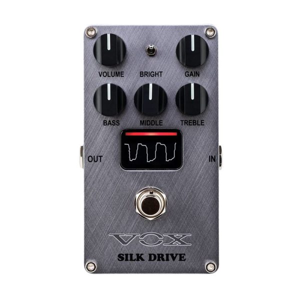 «Pedal de overdrive de válvula Silk Drive ofrece tonos de overdrive dinámicos, limpios y cremosos de los amplificadores boutique clásicos en un formato de pedal compacto, pantalla OLED muestra un osciloscopio mientras el pedal está activo o anulado, lo que le permite comprender exactamente cómo se ve afectada su señal.